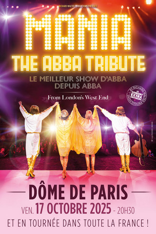 MANIA, l’insurpassable ABBA Tribute, est de retour en France pour le plus grand plaisir des nombreux fans d’ABBA avec un spectacle parisien le 17 octobre 2025 au Dôme de Paris et une tournée française. MANIA est l’incarnation saisissante et plus vraie que nature d’un des groupes les plus mythiques des années 80 et symbolise à lui seul une époque que nous n’avons jamais cessé de vénérer. Le spectacle musical MANIA reste en effet fidèle aux moindres détails : instruments, éclairages, chorégraphies, semelles compensées, paillettes et boules disco jusqu’à l’accent suédois pour mieux vous emporter dans l’univers d’ABBA. Durant deux heures d’un spectacle à couper le souffle, venez revivre, chanter et danser au son de leurs tubes éternels : « Money Money Money » – « Waterloo » – « Gimme, Gimme, Gimme » – « Dancing Queen » – « SOS », et bien d’autres encore Un Tribute consacré au groupe légendaire ABBA, incarné par LONDON’S WEST END. Une date à Paris, et en tournée dans toute la france. Vendredi 17 Octobre 2025 à 20h30 LE DÔME DE PARIS (Palais des Sports) 01 48 28 40 10 Robert BONNARDOT