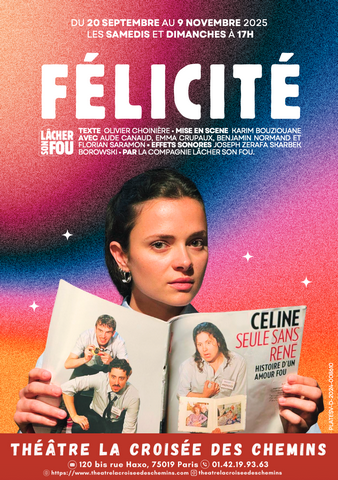 Un texte de Olivier CHOINIÈRE Le Pitch: Caro, caissière chez Wal-Mart, est fan absolue de Céline Dion. Pendant ces heures de travail, Caro rêve. Elle met à l’oeuvre son imagination débordante pour réunir deux destins de femmes que tout oppose : celui de son idole et star internationale, Céline, et celui d’Isabelle, victime d’une tragique histoire familiale. Avec sa capacité à inventer des univers toujours surprenants, Olivier Choinière fait exploser son imaginaire dans cette pièce qui aborde l’étrange fascination que nous avons à la fois pour la vie idyllique des célébrités et pour les histoires sordides et pathétiques. Ses trois collègues de travail, Préposée, Gérant et Étalagiste, sont bien loin de se douter qu’ils seront mis à contribution dans cette mission. Avec: Aude CANAUD Emma GRUPAUX Benjamin NORMAND Florian SARAMON Musicien: Joseph ZERAFA SKARBEK BOROWSKI Mise en Scène: Karim BOUZIANE Durée: 1h10 Jusqu’au 9 Novembre 2025 Les Samedis et Dimanches à 17h00 THÉÂTRE LA CROISÉE DES CHEMINS (Salle Belleville) 01 42 19 93 63 Robert BONNARDOT
