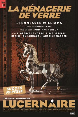 Une pièce de Tenessee WILLIAMS (1911-1983), écrite en 1944, et qui a été son premier grand succès. Ce texte a été brillament traduit par Isabelle FAMCHON. Je l’ai vu une première fois, au Théâtre de Poche Montparnasse avec Cristiana REALI en 2018, et je suis revenu dès sa création au Lucernaire. Oyez braves gens !, si vous n’avez pas eu la chance d’applaudir cette magnifique affiche, elle est de retour au Lucernaire, avec la même talentueuse distribution, qui avait eu tant de succès, lors des premières représentations. « Nous sommes chez les Wingfield, à Saint-Louis, dans l’Amérique des années 30. Amanda élève seule ses deux grands enfants, Tom et Laura.. Tom, narrateur et personnage de la pièce, travaille dans un magasin de chaussures pour entretenir la famille, mais il rêve de cinéma et d’évasion,. Quant à la si fragile et boiteuse Laura, elle fait semblant d’aller à un cours de dactylo, mais erre toute la journée dans la ville Jim un collègue de Tom se trouve être un garçon pour lequel Laura vouait une passion quand elle était plus jeune. Amanda invite Jim à dîner dans l’espoir de le rendre amoureux de sa fille. Mais rien ne se passe comme prévu… » Avec: Florence LE CORRE Alice SERFATI ou Alice MACÉ Blaise JOUHANNAUD Antoine MAABED Mise en Scène: Philippe PERSON Lumières/Vidéos: Tom BOUCHARDON Décor: Vincent BLOT Durée: 1h25 Du 12 Novembre 2025 au 25 Janvier 2026 Du Mercredi au Samedi à 21h00 Le Dimanche à 17h30 THÉÂTRE LE LUCERNAIRE 01 45 44 57 34 Robert BONNARDOT
