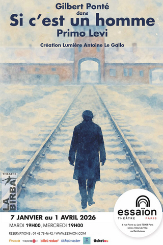 Un texte bouleversant de Primo LEVI, adapté et interprété par Gilbert PONTÉ, dont j’ai applaudi tous les spectacles depuis une bonne vingtaine d’années. Et je vous recommande cette affiche, vous allez passer une très bonne soirée !!! Le Pitch: « Cette oeuvre n’est pas une fiction. Elle est un cri, une parole de vérité, celle d’un homme revenu miraculeusement de l’horreur absolue. Primo Levi écrit pour témoigner, pour transmettre l’expérience nue de l’abîme. Si c’est un homme ne raconte pas simplement Auschwitz : il nous y confronte. Écrit dès sa libération de l’enfer, son oeuvre est reconnue comme un témoignage essentiel de l’histoire humaine. Primo Levi a choisi le titre Si c’est un homme et non Si c’est un Juif pour inscrire son expérience dans une dimension universelle. Ce qu’il a vécu transcende toute identité. Son oeuvre n’est pas seulement un témoignage rigoureux mais devient une oeuvre d’une puissance narrative exceptionnelle. Son témoignage demande à être transmis avec rigueur, justesse, et pudeur. » Création Lumières: Antoine LE GALLO Du 7 Janvier au 1er Avril 2026 Les Mardis et Mercredis à 19h00 Durée: 1h20 ESSAÏON THÉÂTRE Salle Cabaret 01 42 78 46 42 Robert BONNARDOT