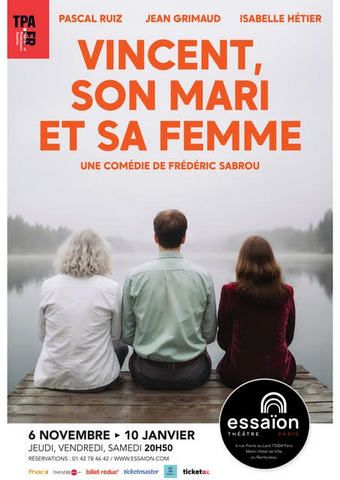 Betty et Grégoire se partagent Vincent, depuis 35 ans. C’est une longue histoire, jusqu’au jour où Betty et Grégoire découvrent que Vincent les trompe avec un plus jeune, un plus beau… Une comédie de Frédéric SABROU Avec: Isabelle HÉTIER Jean GRIMAUD Pascal RUIZ Musique/Mise-en-Scène: Frédéric SABROU Jusqu’au 10 Janvier 2026 Du Jeudi au Samedi à 20h50 DATES SUPPLÉMENTAIRES: 17, 24, 31 Janvier et 7 Février 2026 à 20H50 Durée: 1h20 THÉÂTRE DE L’ESSAÎON (Salle Théâtre) 01 42 78 46 42 Robert BONNARDOT