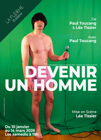 Un seul en scène, façon Stand Up. Nous le devons à Léa TISSIER et Paul TOUCANG. Le Pitch: « Bonjour, je m’appelle Paul Toucang, j’ai 30 ans. J’adore passer l’aspirateur dans mes cheveux, et parfois je danse nu chez moi. Au foot, je cueillais des pâquerettes. J’aime pas la musculation, mais je vais à la salle de sport. Et les gens qui disent « frère » me donnent envie de m’occire sur le champ. Ce spectacle, c’est ma façon d’inventer ma masculinité. Parce que oui, la masculinité, ça s’invente. » Je ne vais pas avoir la possibilité de le voir, eu égard aux dates et à l’heure où ce spectacle est programmé. Je n’ai trouvé personne ayant vu cette affiche, qui vient juste de débuter, mais c’est à découvrir, alors ne boudez pas votre plaisir. L’interprète: Paul TOUCANG Mise en Scène: Léa TISSIER Durée: 1h00 Jusqu’au 14 Mars 2026 Les Samedis à 19h00 THÉÂTRE LA FLÈCHE 01 40 09 70 40 Robert BONNARDOT