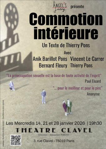 Une pièce de Thierry PONS, qui en signe la Mise en Scène. Le Pitch: « Sur scène, vous verrez un couple de seniors, figures dominantes de cette bourgeoisie intellectuelle qui a vécu son épopée d’amour à la fin des Trente Glorieuses. Ils sont accompagnés d’un vieil ami, fidèle et patient, et d’un fils dont l’absence est énigmatique. A la demande de leur ami, la mère et le père s’engagent imprudemment dans une expérience de cinéma vérité. L’affaire, plus rude que prévue, va entamer leur fierté et leur capacité à revivre sereinement ce parcours de vie. Un parcours où la réussite individuelle se plaçait, selon eux, sous les auspices d’une liberté sans contrainte et d’une disposition innée – mais illusoire – à maîtriser leur destin. » Avec: Anik BARILLOT PONS Vincent LE CARRER Bernard FLEURY Thierry PONS Les 21 et 28 Janvier 2026 à 19h30 Durée: 1h20 THÉÂTRE CLAVEL 09 75 45 60 56 Robert BONNARDOT