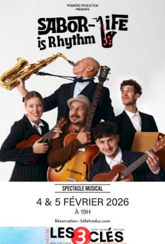 Deux représentations pour un spectacle qui incite à la bonne humeur ! Le pitch: « Une énergie électrisante, du charisme et de la musique en direct sont les ingrédients principaux que les interprètes mijotent dans cette recette, engagés à servir du tap dance et des saveurs à travers une proposition saine, riche en humour et en improvisation, marinée de passion et assaisonnée d’un mélange frais de styles et de textures. SABOR-Life is Rhythm invite tout type d e public à savourer des chorégraphies succulentes et des rythmes juteux qui sauront satisfaire le palais d e chaque convive. U n délice pour les sens… » Avec: Danseurs: Jofre COSTA en alternance avec Tomaso Maria PRAZZOLI Gaëtan FARNIER Ivan BOUCHAIN Danseuse: Dominique CRESSWELL Contrebasse/Basse: Ernesto VARGAS Chorégraphies: Ivan BOUCHAIN, Jofre COSTA, Gaêtan FARNIER, Ludovico HOMBRAVELLA Durée: 1h15 Les 4 et 5 Février 2026 à 19h00 THÉÂTRE LES 3 CLEFS 01 89 71 90 30 Robert BONNARDOT