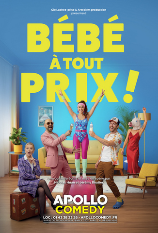« Bébé à tout Prix », c’est une comédie joyeuse de: Nicolas HUAN & Jérémy BOUTTIER, et ils en signent la Mise en Scène: Le Pitch: « Gabriel et Léo n’ont plus qu’un rêve à réaliser pour vivre leur vie parfaite : avoir un enfant ! Cependant, ils ont épuisé toutes les options : l’adoption prend trop de temps et la coparentalité est un vrai casse-tête. Alors, ils décident de se tourner vers la solution ultime : une mère porteuse. Clara est leur dernier espoir ! Mais comment être sûr de choisir la candidate parfaite ? Rien de plus simple : une période d’essai s’impose ! Mais voilà que débarque Catherine, la mère de Gabriel, qui ne sait pas que son fils préfère les garçons… Et c’est là que les ennuis commencent ! » Avec, et en alternance: Astrid GALLO Salomé HÉNON Émilie FAVRE BERTIN Karine MARTIN Myriam ALLAIS Jérémy BOUTTIER Alexandre ALSINA Nicolas HUAN Maxime PEYRON Antoine COTTET Durée: 1h15 Jusqu’au 29 Avril 2026 Les Mardis et Mercredis à 19h30 APOLLO THÉÂTRE 01 43 38 23 26 Robert BONNARDOT